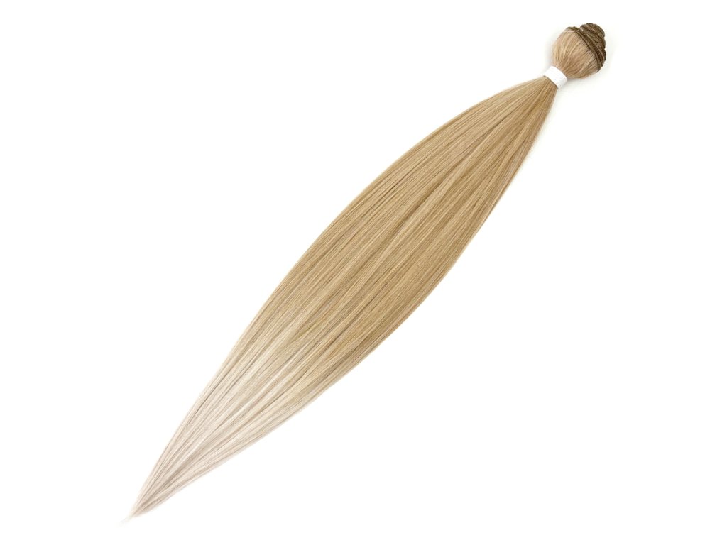 Straight fake hair on a fringe for creating hairpieces and extravagant hairstyles. Fake hair does not shine and looks like real hair. The fibres are flame retardant and can be heat styled, curled and straightened repeatedly with a curling iron at a maximum temperature of 180C.